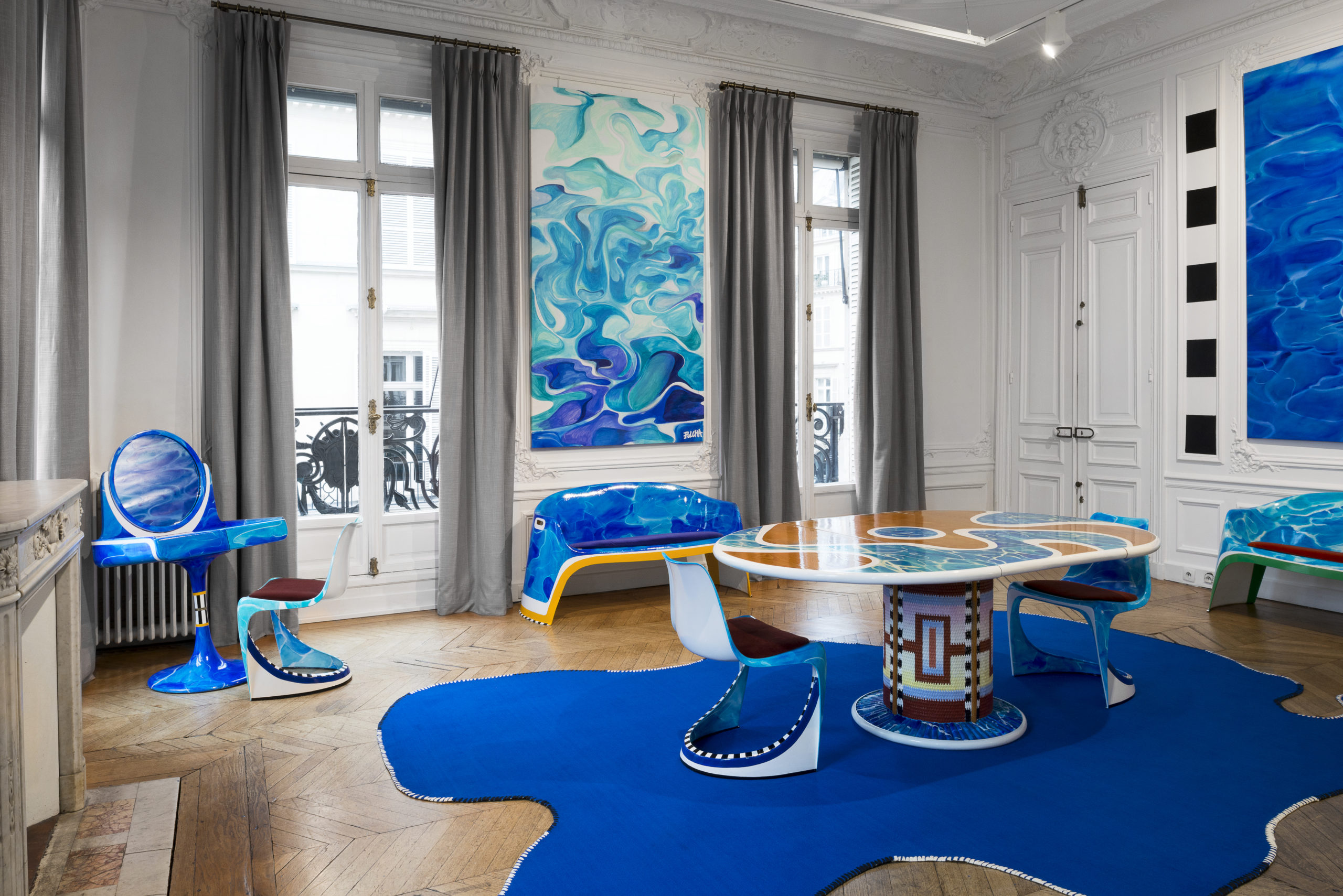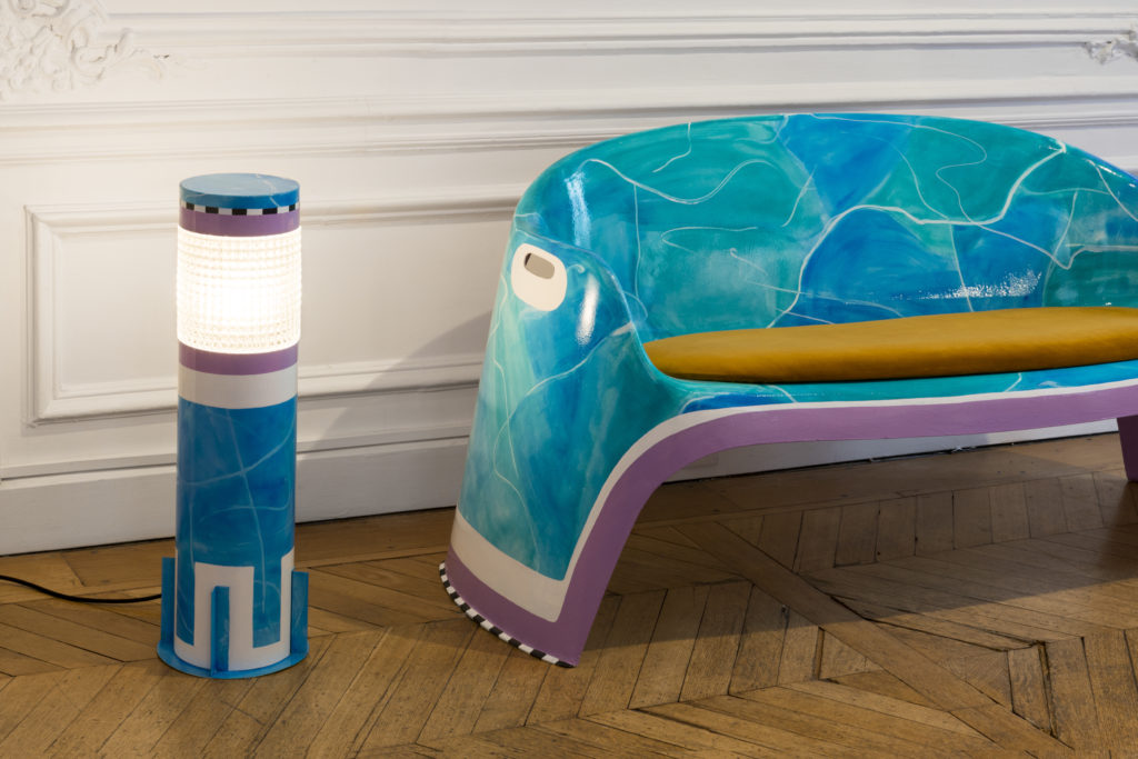 Transforming carefully selected pieces in their workshop located on rue Oberkampf, Pauline & Charlotte combine traditional techniques with graphic research, playing with vibrations and light refractions, to turn still material into sinuous curves making the material almost intangible.